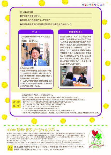 その経験を生かし、最近は顧問先企業や異業種交流会などで、契約・利用規約、著作権や商標、コンプライアンス、SNSの取扱いやハラスメント、民法改正などのセミナーを定期的に行っています。また、企業が取り組んでいる社会イベントとして子ども向けの法教育イベントなども開催させていただいております。